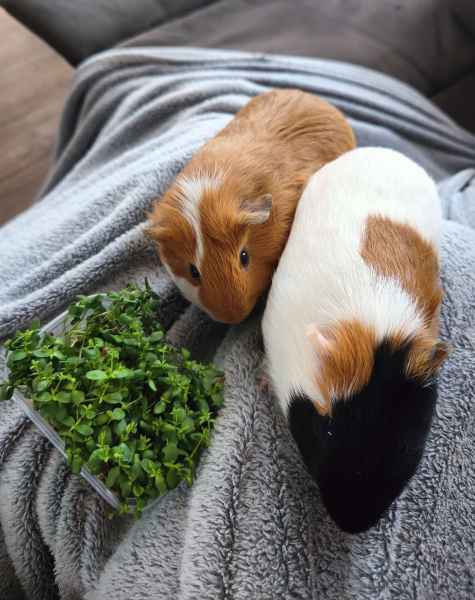 To moje ukochane świnki morskie – Florek i Ryżyk. Mimo że bardzo się od siebie różnią, są najlepszymi przyjaciółmi. Mieszkają razem w jednej klatce i świetnie dogadują się nie tylko ze sobą, ale też z moją rodziną, a nawet z moim kotem. Florek jest czarno-biały i bardzo spokojny – najbardziej lubi jeść, spać i obserwować wszystko dookoła. Ryżyk natomiast jest bardzo aktywny i ciekawski. Nie potrafi usiedzieć w miejscu ani chwili – cały czas biega i odkrywa wszystko, co napotka na swojej drodze.