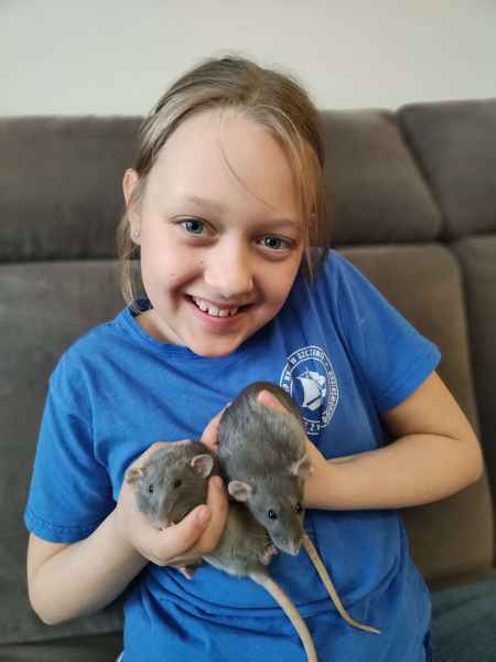 Zuzanna z klasy 2E wraz ze szczurami Malinka i Truskawka