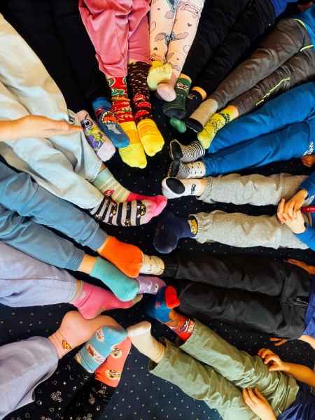21 marca obchodzony jest Światowy Dzień Zespołu Downa – wyjątkowy czas, który przypomina o akceptacji, szacunku i sile różnorodności. W tym roku data ta przypadła w sobotę, dlatego w naszej szkole świętowaliśmy w poniedziałek, 23 marca. Tego dnia korytarze wypełniły się kolorowymi, nie do pary skarpetkami – symbolem solidarności z osobami z zespołem Downa.