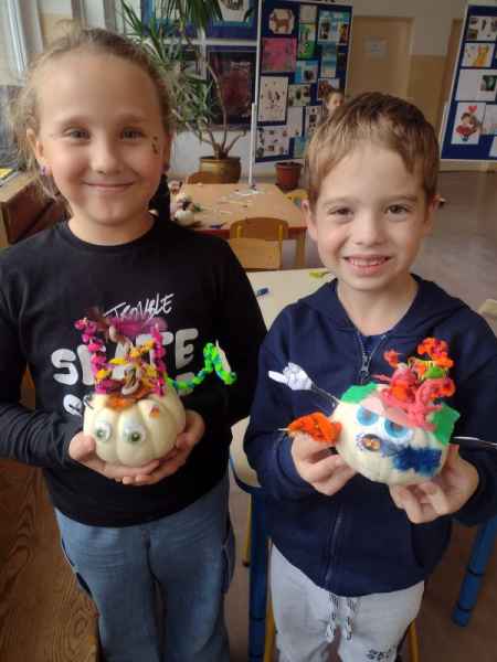W środę, 30 października, w ramach działań Samorządu Uczniowskiego, odbyły się w naszej szkole "Warsztaty dyniowe", na których uczniowie tworzyli własne aranżacje najpopularniejszego jesiennego warzywa. Każdy zaprojektował i wykonał własną wersję dyni, poszukując oryginalnych pomysłów na jej dekorację. Nad organizacją i przebiegiem warsztatów czuwały Panie: Nicola Kaczemba, Iza Kałuża oraz Katarzyna Uścinowicz.