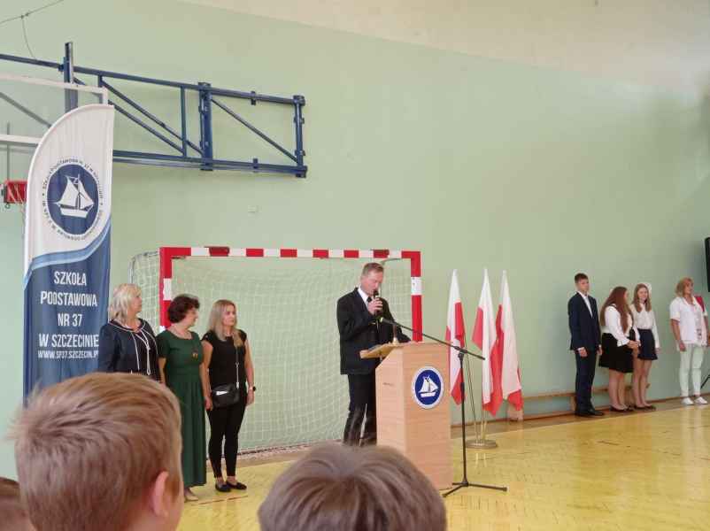 Po wakacjach budynek SP37 wypełniła radość uczniów. Uśmiechnięte twarze, serdeczne powitania, wspomnienia z wakacji. W takiej atmosferze rozpoczęliśmy rok szkolny 2023/2024. Odbyły się akademie dla wszystkich grup wiekowych. Szczególnie ciepło witaliśmy uczniów klas pierwszych, którzy po raz pierwszy przekroczyli próg szkoły i dołączyli do uczniowskiej społeczności. Można było wyczuć podniosłą atmosferę. To musiało być pełne emocji wydarzenie, ponieważ dzieci po raz pierwszy przekroczyły próg naszej szkoły. Uczniów przywitał dyrektor szkoły Janusz Cymerman i wicedyrektorzy życząc im sukcesów w szkole. Na uczniów, którzy w tym roku szkolnym poszli do czwartej klasy czekali nowi wychowawcy. Z pewnością budziło to ich ciekawość! Starsi koledzy witali się z nauczycielami, których znają od kilku lat. Dla siódmoklasistów nowością była inauguracja roku szkolnego w budynku szkoły przy ul. Z. Nałkowskiej. Od 1 września mają okazję poznać innych nauczycieli i starszych kolegów. Ósmoklasistów, którzy kontynuują naukę w drugim budynku SP37, czeka pierwszy egzamin po szkole podstawowej. Trzymamy za nich kciuki. Gdy rozbrzmiał pierwszy dzwonek, uczniowie udali się na spotkanie z wychowawcami. Mury szkoły wypełniły się radością, uczniowskim gwarem i licznymi wspomnieniami z wakacji. Przed nami rok wyzwań, obowiązków i przygód z nauką. Oby były przyjemne i stały się okazją do osiągania sukcesów!