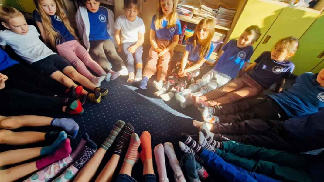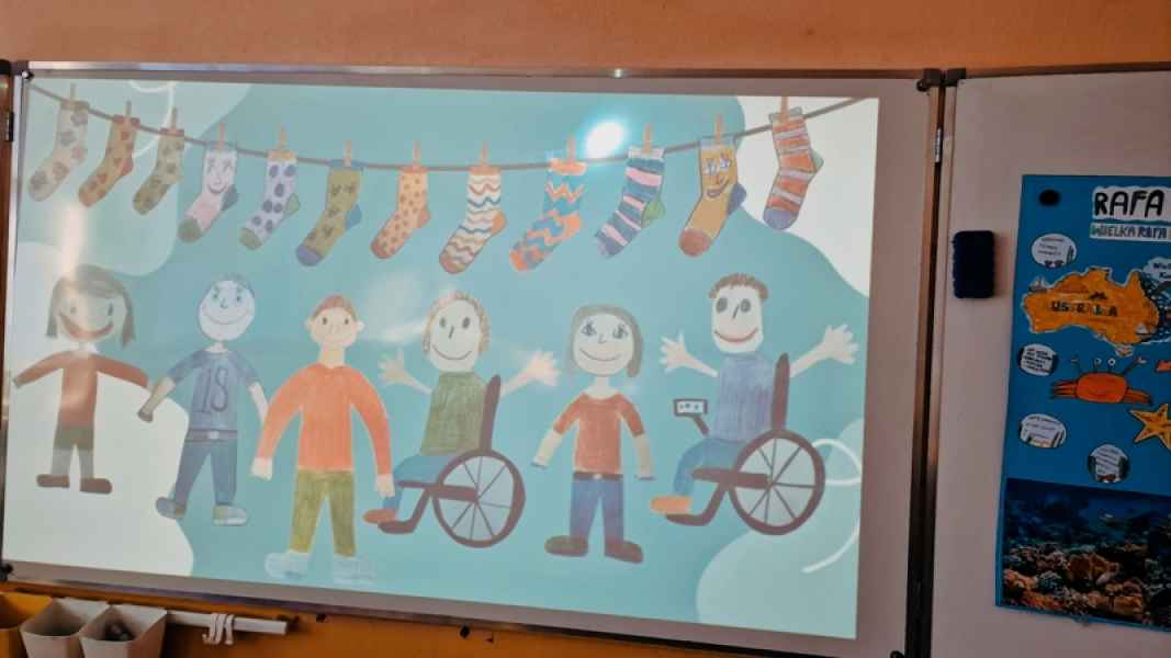 Nie zabrakło również działań twórczych – uczniowie projektowali „skarpetki życzliwości”, wyrażając w nich pozytywne emocje i wartości. Dużym zainteresowaniem cieszyły się także skarpetkowe zadania matematyczne, które połączyły naukę z dobrą zabawą.